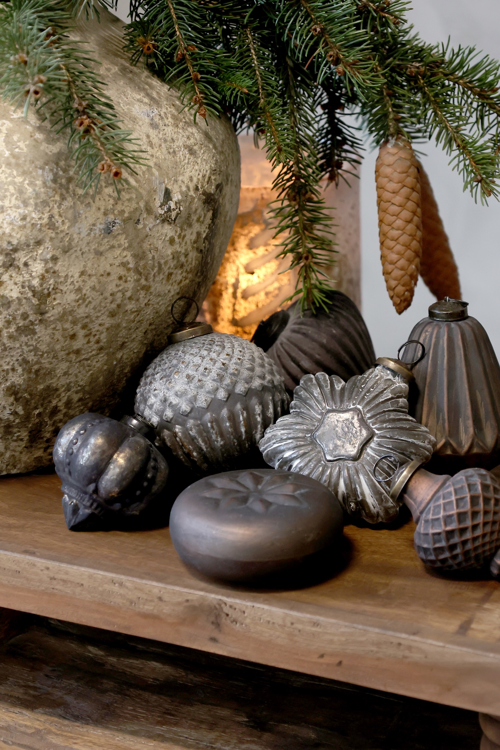 Joulukoriste antique mocca.  Koko 7 x 7 cm, lasia. Rustiikkisen ruskea pinta. Chic Antique