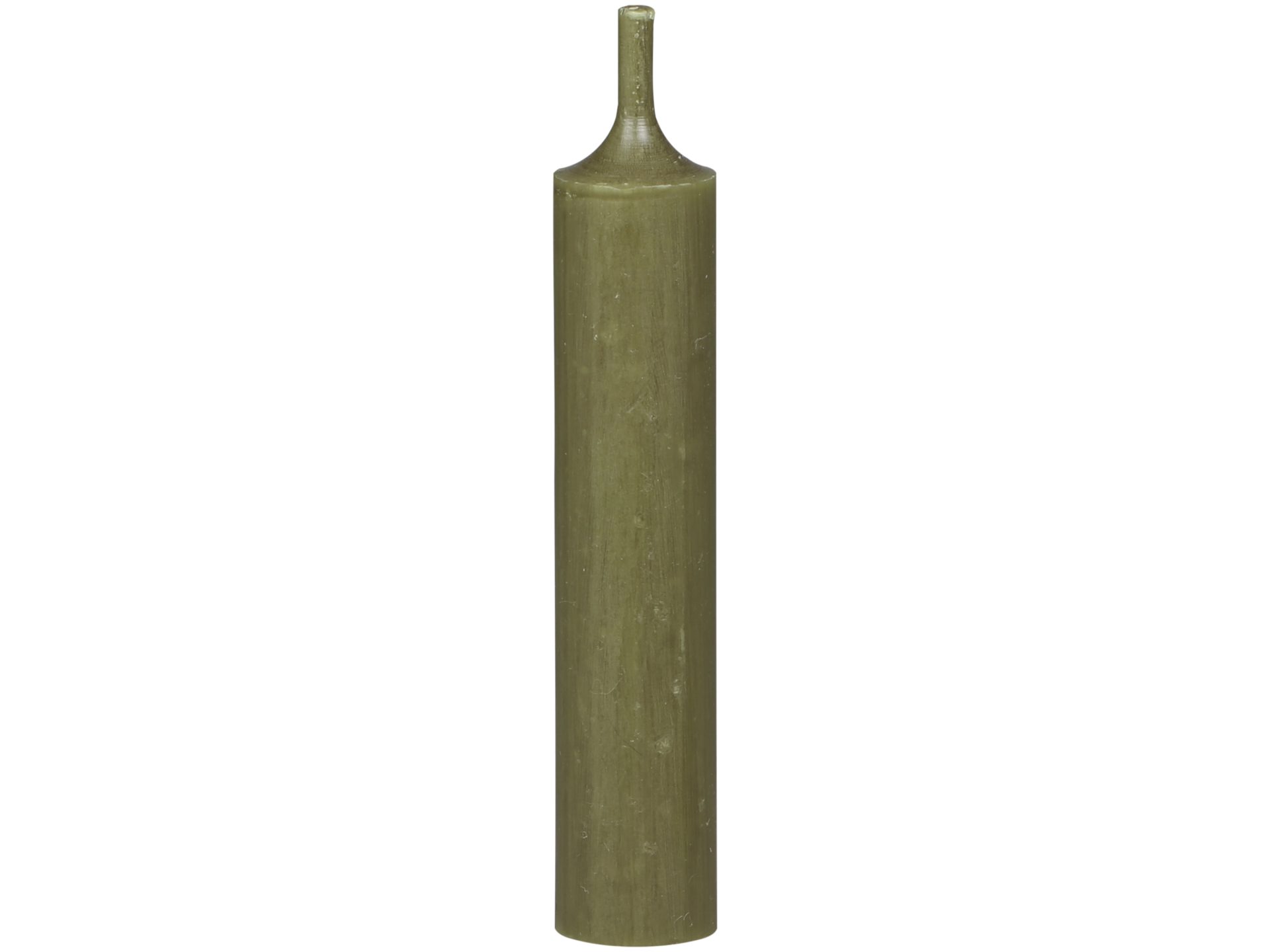 Kruunukynttilä tumma vihreä. Paloaika on 4,5h. Myydään yksittäin. Korkeus 12cm, halk. 2cm. Normaalia lyhyempi malli. Parafiini. Chic Antique