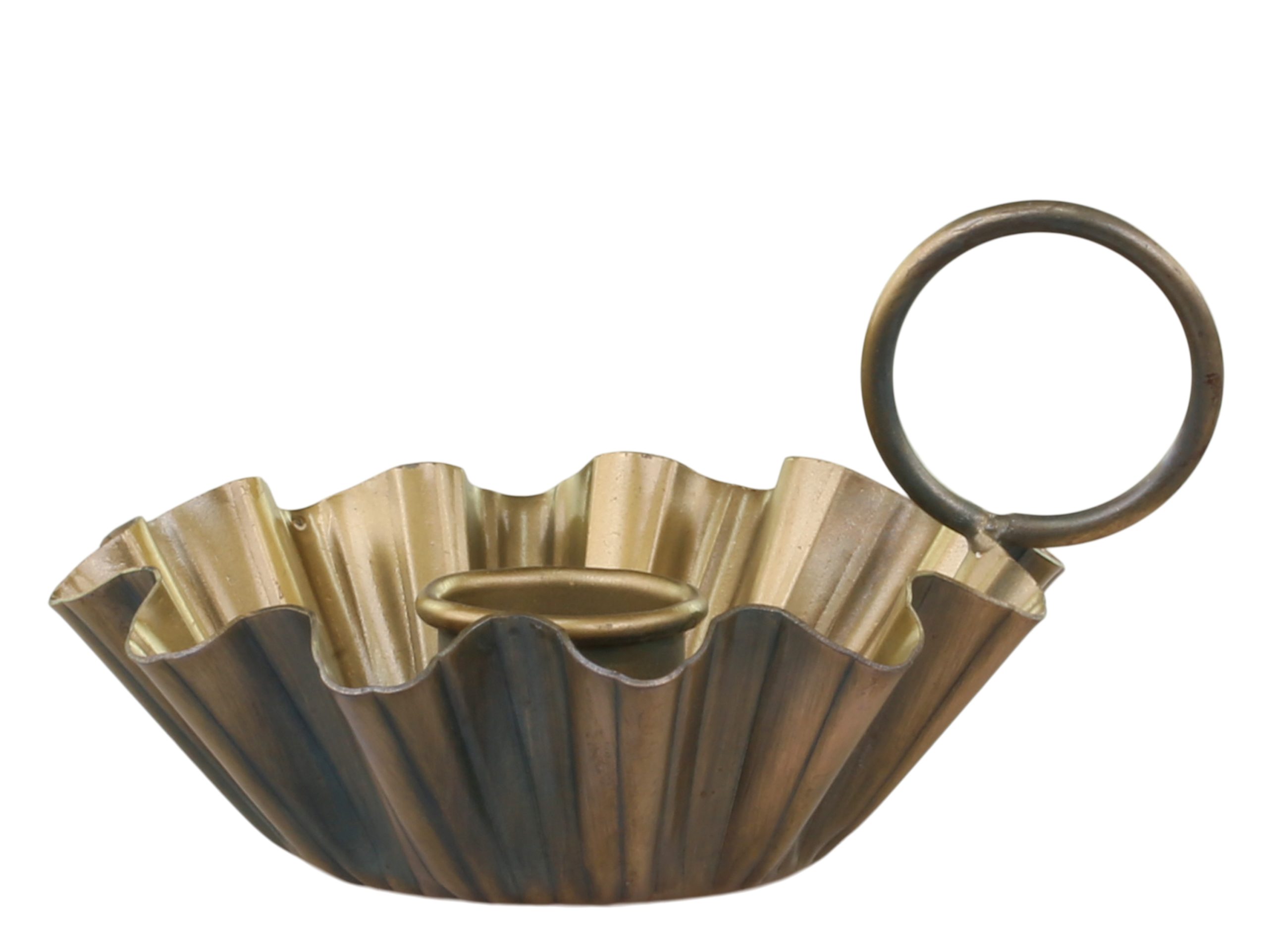 Messinkinen kynttilänjalka sormikahvalla. Halk. 6 x 10,5 x 9,5 cm. Sisäreiän halk. 2,2 cm, sopii perinteiselle kruunukynttilälle. Chic Antique