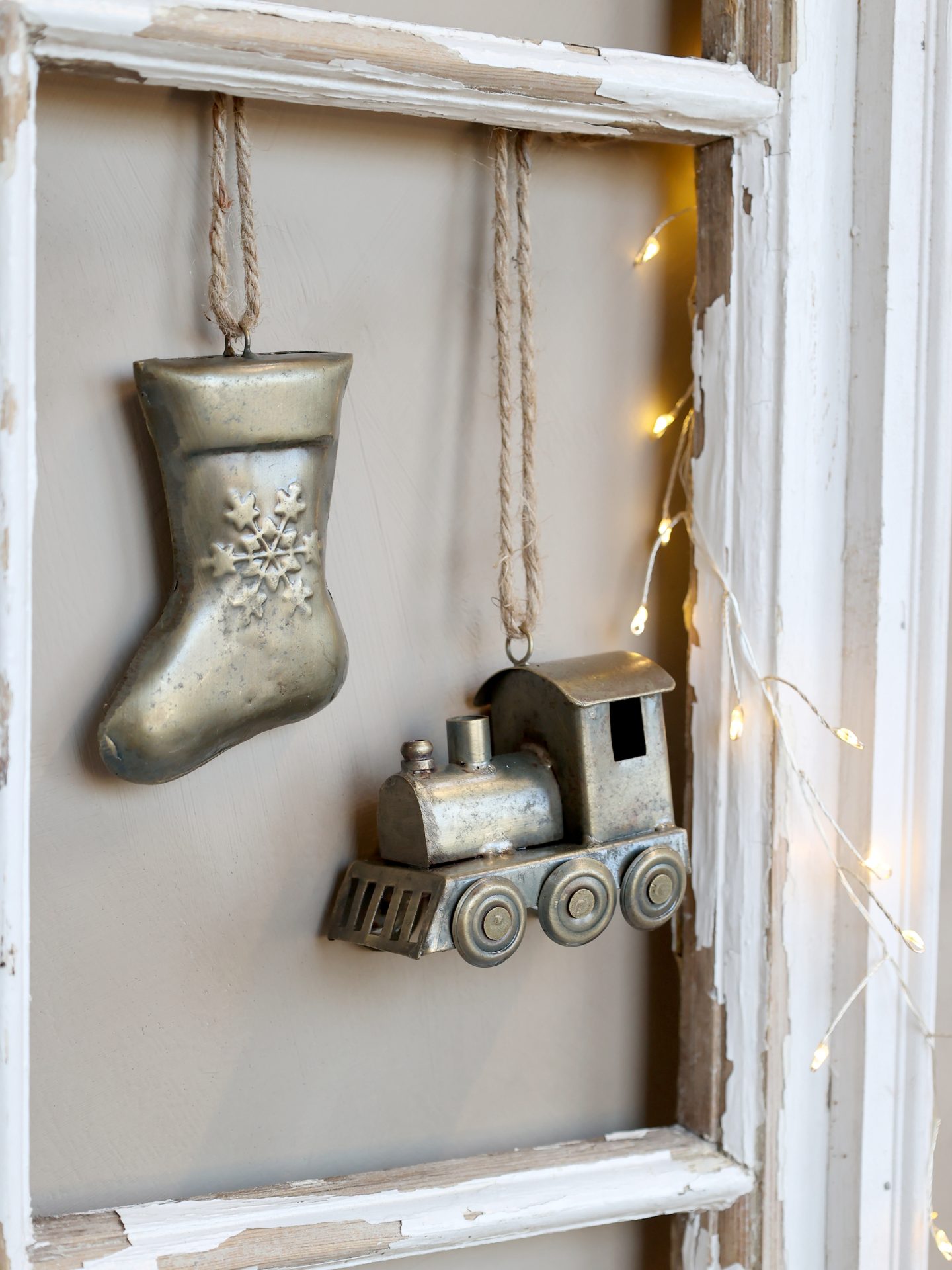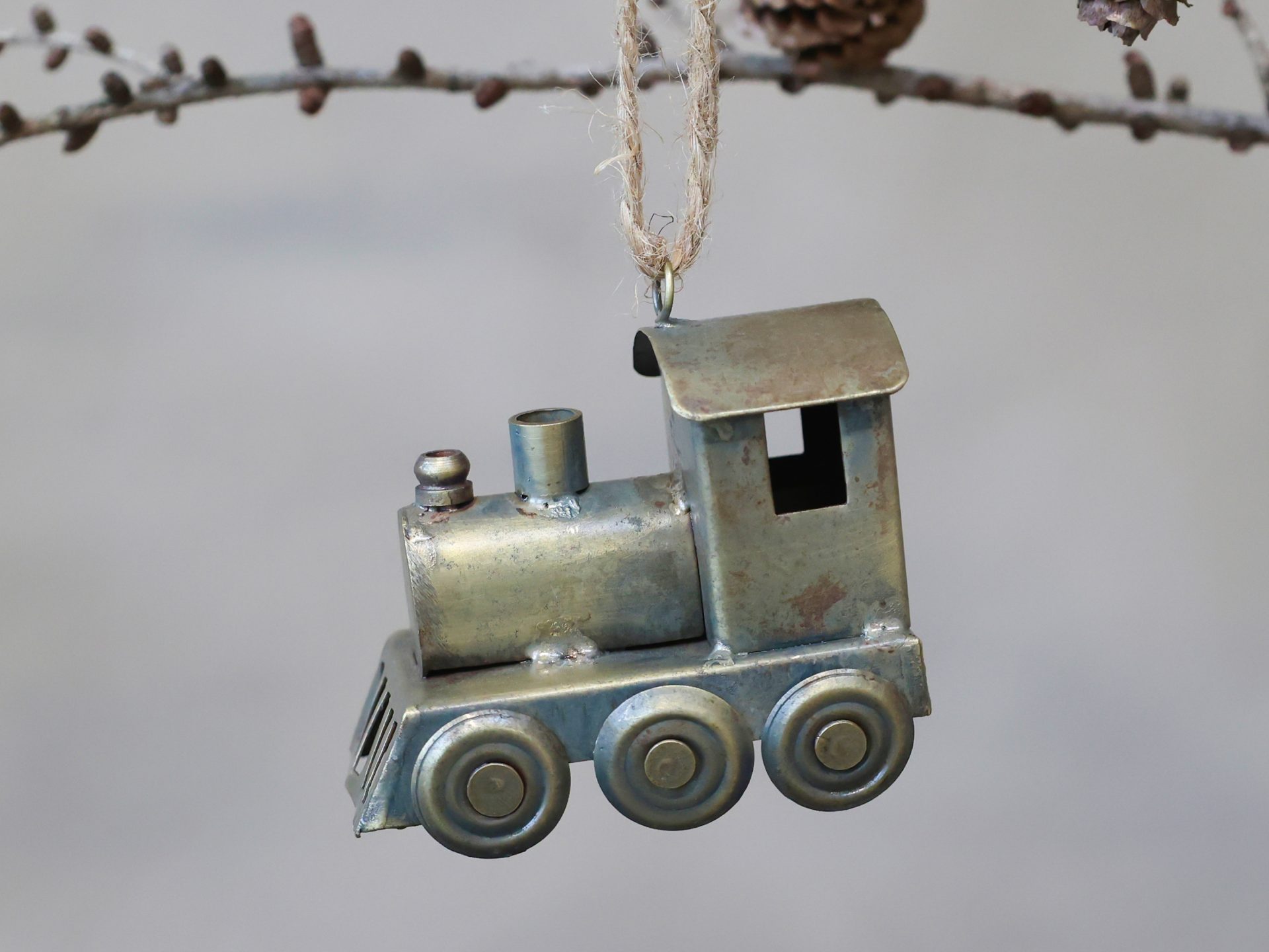 Messinkinen veturi 7 x 7,5 x 5 cm. Juuttinaru. Chic Antique