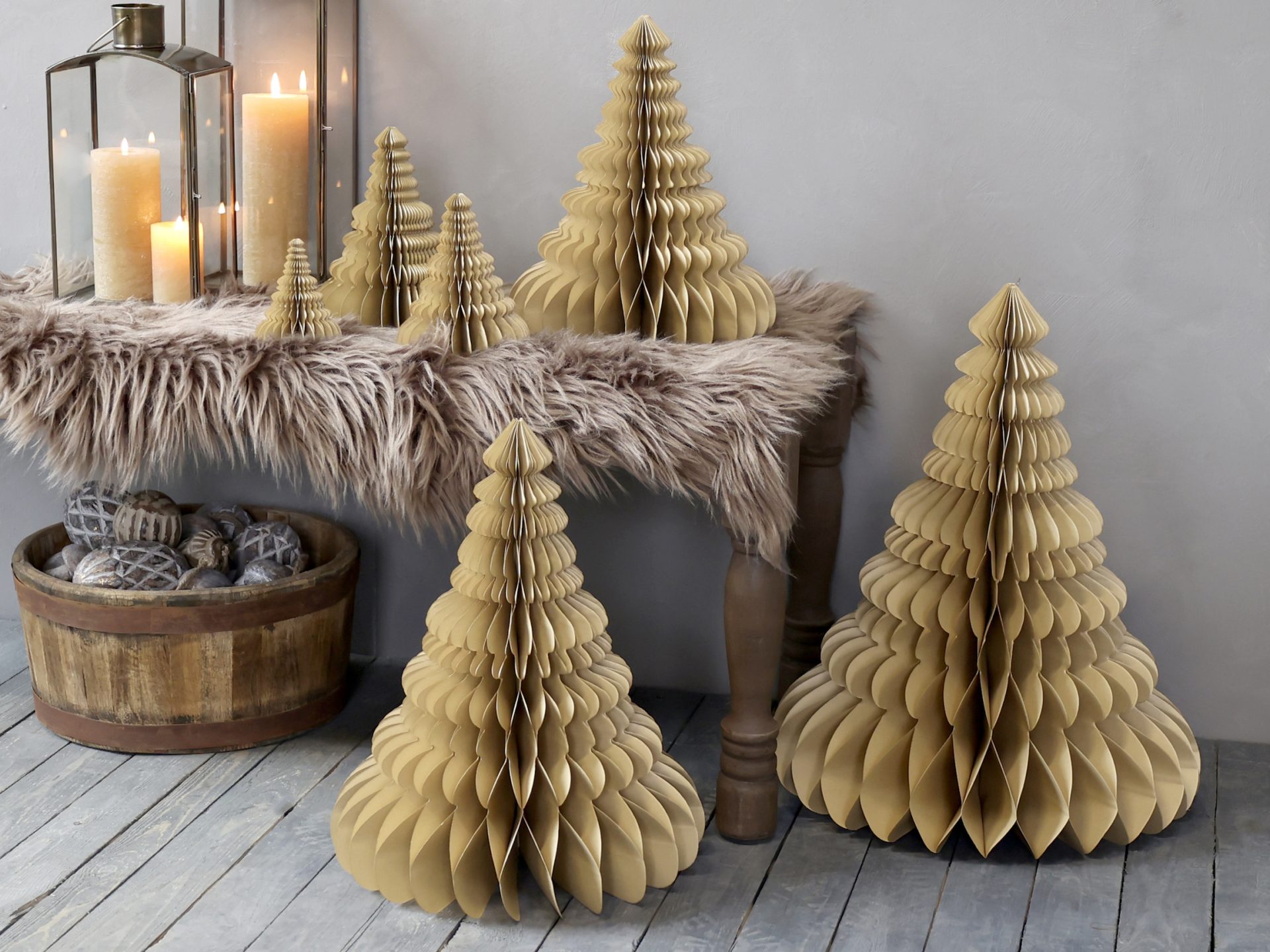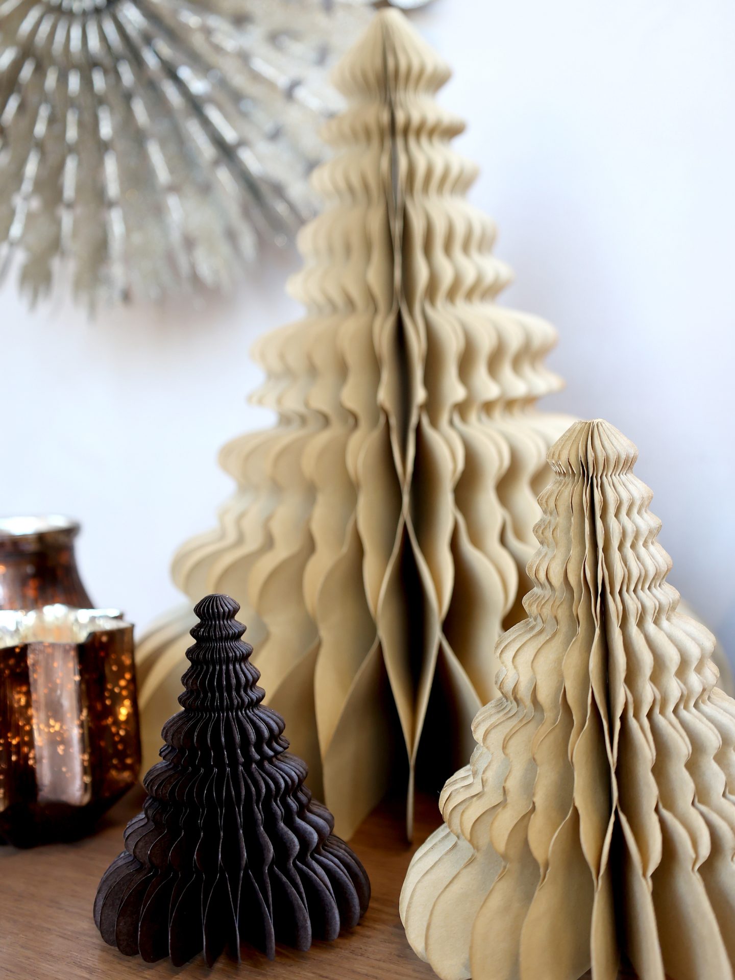 Paperikuusi meripihka 26cm. Pöytäkoriste. Pysyy avattuna magneetilla. Chic Antique