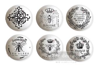Redesign siirtokuvatarra esim. puuvetimiin tai muuhun vastaavaan. Kiinnittyy myös lasiin, pohjan oltava vaalea tai lasia, jotta kuva tulee esiin. Yhden kuvan halkaisija n. 3-4 cm. Paperin koko 22,9 x 27,9cm.